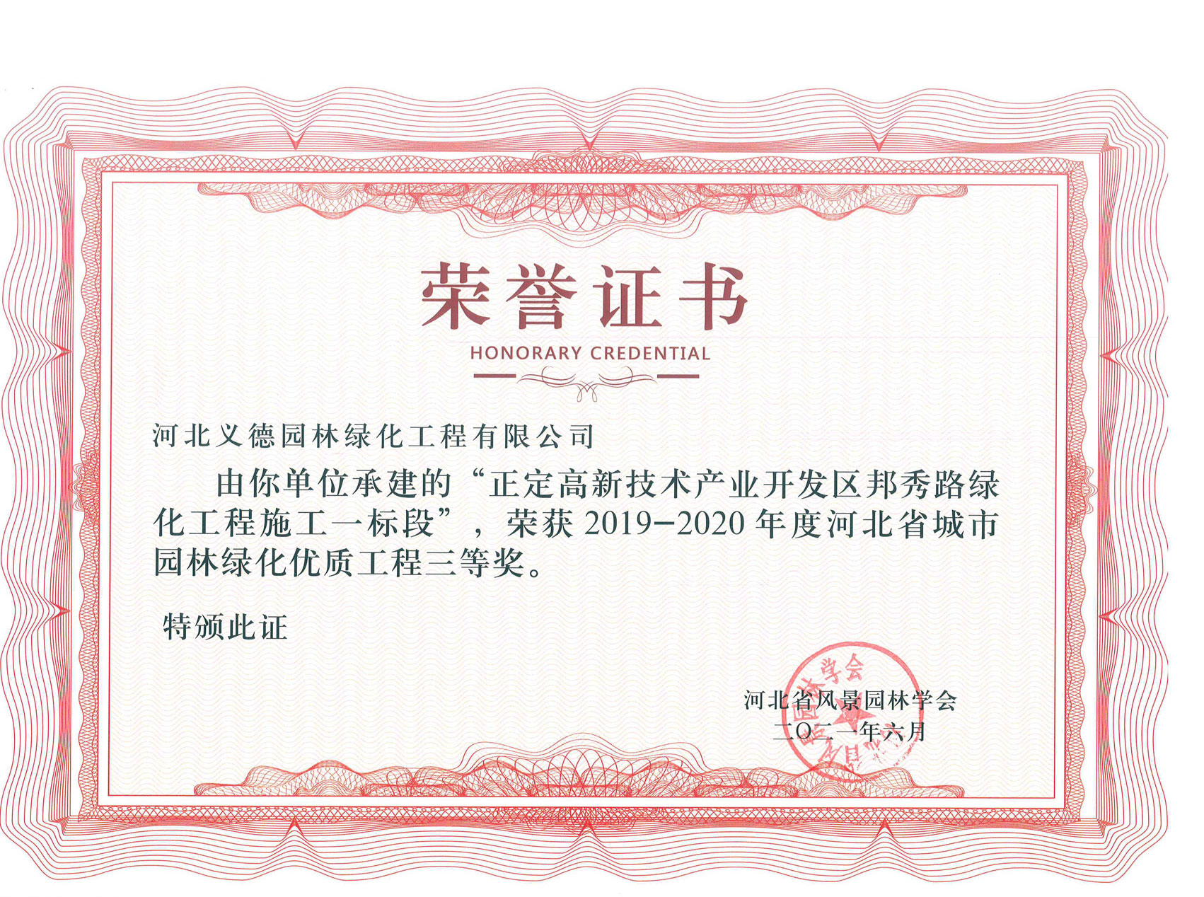 工程業(yè)績榮獲有2017-2018年度河北省城市園林綠化優(yōu)質工程二等獎兩個;2019-2020年度河北省城市園林綠化優(yōu)質工程二等獎兩個、三等獎兩個;2018至2020年保定市燕趙杯優(yōu)質工程五個;2020年度石家莊市優(yōu)質工程一個。